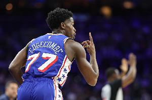 本場比賽,76人探花埃奇庫姆狀態回暖,在37分半的時間里,投籃15中6,三分球8中4,罰球2中2,拿到18分7籃板3助攻1搶斷的數據。