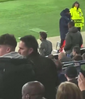 現場球迷拍到的畫面,在死球時,替補的姆巴佩從看臺來到場邊,和裁判說B席的手球犯規。