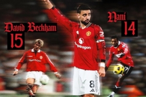 此外,貝克漢姆還將B費的圖片P上曼聯經典的球衣,寫道:新紀錄!??????