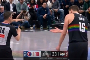 GIF-約基奇推人被吹進(jìn)攻犯規(guī),他瘋狂抱怨被吹T