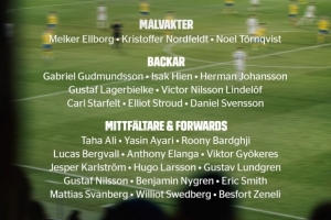 塔哈·阿里(馬爾默)、亞辛·阿亞里(布萊頓)、巴德吉(巴薩)、貝里瓦爾(熱刺)、伊蘭加(紐卡)、約克雷斯(阿森納)、卡爾斯特羅姆(烏迪內(nèi)斯)、雨果·拉爾森(法蘭克福)、古斯塔夫·隆格倫(哥德堡蓋斯)、古斯塔夫·尼爾松(布魯日)、本杰明·尼格倫(凱爾特人)、埃里克·史密斯(圣保利)、馬蒂亞斯·斯萬貝里(沃爾夫斯堡)、斯韋德貝里(塞爾塔)、貝斯福特·澤內(nèi)利(圣吉羅斯)