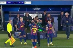 體育資訊03月19日訊 歐冠1/8決賽次回合,巴薩對陣紐卡。66分鐘,巴薩連換三人,坎塞洛、萊萬、費爾明被換下,奧爾莫、費蘭、18歲埃斯帕特出場。