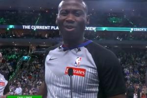 “我們都沒看到是誰出界,判罰結(jié)果是隨便來兩個人(any two)中圈跳球。雄鹿對這球提出了挑戰(zhàn)。”