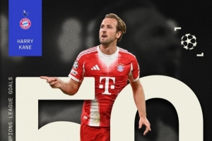 據媒體統計,凱恩成為歐冠歷史第11位打進50球的球員,也是英格蘭球員首人。