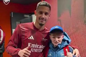 阿森納官方曬出視頻,薩利巴對球童說道:還好嗎?上次很抱歉。隨后薩利巴將自己的球衣送給這名球童