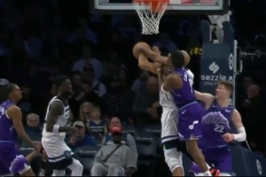 GIF-戈貝爾扣籃被科利爾兇狠犯規 要發作被蘭德爾抱住&科利爾一級惡犯