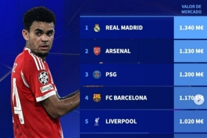 體育資訊3月19日訊 本賽季歐冠8強全部產生,德轉也列出8強球隊身價榜,具體如下: