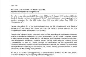 關于2031年及2035年亞洲杯申辦程序終止的通知