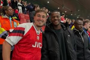 現年24歲的布基納法索前鋒瓦塔拉在歐冠比賽出現在了阿森納球迷中,他身處上層看臺,見證了槍手2-0藥廠的比賽。現場不少人認出了他,并尋求合影。
