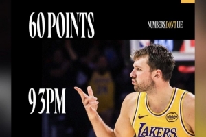 賽后,拉拉維亞更新社媒,曬出了東契奇的數(shù)據(jù),同時(shí)寫道:“我只說三點(diǎn),60分、9三分、5搶斷!”