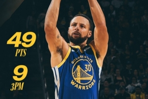 此役,庫里出戰36分03秒,26投16中,三分17中9,罰球8中8,砍下49分4籃板2助攻2搶斷。