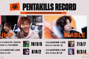 體育資訊3月20日訊 在本次全球先鋒賽中,Diable連續(xù)兩個(gè)BO5拿下五殺,分別是BFX對陣BLG第二局的金克斯,以及BFX對陣TSW第一局的伊澤瑞爾;