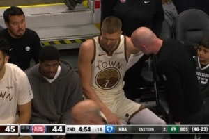 比賽上半場(chǎng)結(jié)束,勇士官方宣布,波爾津吉斯(下背部酸痛)本場(chǎng)比賽回歸成疑。
