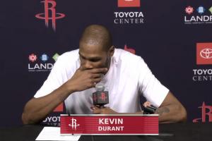 賽后,杜蘭特參加新聞發(fā)布會,接受了記者的采訪。