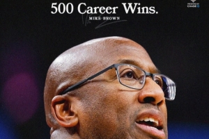 這是主教練邁克·布朗教練生涯的第500場勝利,球隊(duì)官方曬圖祝賀。
