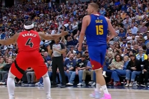 GIF-約基奇搶到前場籃板造成巴恩斯犯規(guī)