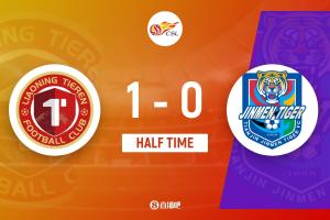 上半場補時3分鐘。半場戰罷,遼寧鐵人1-0天津津門虎。