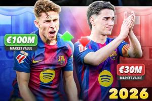 體育資訊03月21日訊 近日德轉更新了西甲球員身價,巴薩中場費爾明身價飆升到1億歐元,而加維則下跌到3000萬歐元。