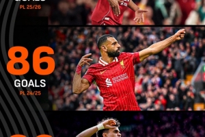 過去兩個賽季,利物浦38輪聯賽均打進86球。也就是說,剩余的7場聯賽,即便紅軍每場比賽打進5球也無法和過去兩個賽季的進球數匹敵。