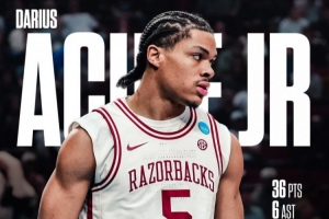 本場(chǎng)比賽雙方后衛(wèi)展開精彩對(duì)飚,阿肯色大學(xué)新人后衛(wèi)小達(dá)里厄斯·阿卡夫出戰(zhàn)34分鐘22投11中,三分6中3,罰球13中11狂砍36分6助攻,最后時(shí)刻連得9分收割比賽。海波特大學(xué)身高1米78的后衛(wèi)羅伯·馬丁出戰(zhàn)34分鐘23投11中,三分11中3,罰球5中5空砍30分5助攻。