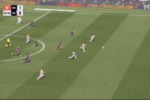 比賽第83分鐘,巴列卡諾反越位戰術打成,埃斯皮諾得球,此時巴列卡諾4人直面巴薩門將霍安·加西亞,但最終埃斯皮諾的射門打高了。