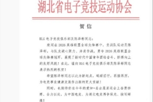 體育資訊3月23日訊 媒體人王瑋晨曬出湖北省電競協(xié)會祝賀信: