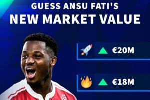 體育資訊03月24日訊 德轉發布身價預告,23歲法蒂身價確定上漲。