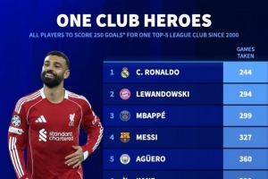 體育資訊11月2日訊 英超第10輪比賽,薩拉赫破門,利物浦主場2-0擊敗維拉。薩拉赫各賽事為利物浦攻入250球,德國轉會市場統計了本世紀五大聯賽球員為單一俱樂部攻入250球所用場次,并列出榜單。