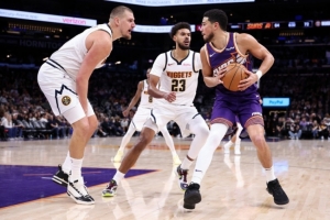 太陽本賽季至今戰績為40勝32負,場均得112.2分,場均失111.2分。上場比賽,太陽主場120-98大勝猛龍,球隊結束5連敗。杰倫·格林20分3籃板7助攻,布克25分3籃板6助攻,吉萊斯皮16分4籃板3助攻,喬丹·古德溫14分7籃板。本賽季太陽主場戰績23勝14負。進入3月份以來,太陽6勝6負。本場羅伊斯·奧尼爾大概率出戰,格雷森·阿倫出戰成疑,狄龍·布魯克斯、馬克·威廉姆斯、阿米爾·科菲、海伍德·海史密斯缺席比賽。太陽目前的排名比較微妙,最后10場常規賽球隊無疑會全力沖擊前6,力爭直接晉級季后賽。近期缺少了多名主力的太陽比較依賴杰倫·格林和布克雙子星的發揮。往績看,太陽面對掘金已經4連敗。