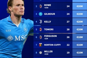 體育資訊3月24日訊 德國轉會市場公布了新一期的意甲球員身價情況,并且盤點了在意甲效力的英國球員身價情況,麥克托米奈以4500萬歐居首。