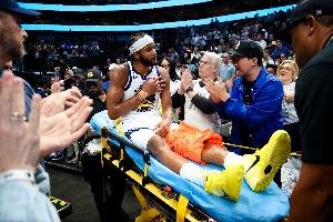 可惜,穆迪的綻放沒有持續(xù)太久。3月24日勇士加時險勝獨(dú)行俠一戰(zhàn),穆迪因手腕傷勢休戰(zhàn)21天后復(fù)出。在遭遇髕腱撕裂重傷前,穆迪已經(jīng)拿到23分、3籃板、3助攻、3搶斷、2蓋帽。突然,膝蓋髕腱撕裂帶來的劇痛強(qiáng)行將穆迪從云端拽落到地面。