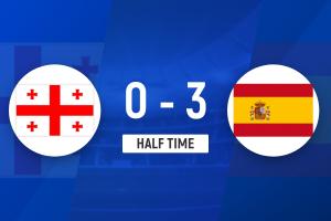 半場結束,西班牙暫3-0格魯吉亞。