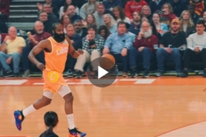 體育資訊3月25日訊 今日騎士戰勝魔術的比賽中,哈登上演個人賽季首扣。
