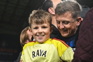 阿森納門將拉亞賽后將自己的球衣和手套送給了一位小球迷,展現了自己的親和力。