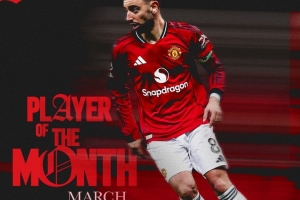 體育資訊3月27日訊 曼聯官方宣布,B費當選3月份隊內最佳球員。
