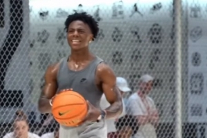 體育資訊11月16日訊 網紅甲亢哥在直播中和杜蘭特一同訓練比試投籃。