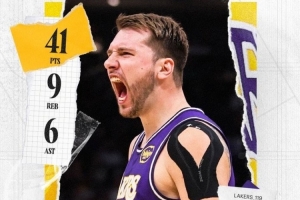 賽后湖人發布東契奇本場數據海報:賽季第四次砍下40+!四次40+也是聯盟本賽季最多的。