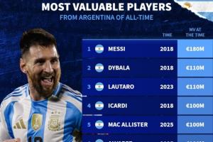 阿根廷歷史身價排行榜: