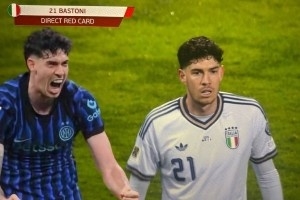 紅牌!紅牌!巴斯托尼犯罪了!不要給意大利人任何的機會!偉大的意大利中后衛!這一刻他不是一個人在戰斗!他不是一個人!馬特拉齊今天愚人節快樂?。。?/p>