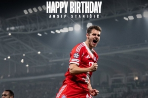 體育資訊4月2日訊 今天是拜仁后衛斯坦尼西奇的26歲生日,拜仁官方為他慶生。
