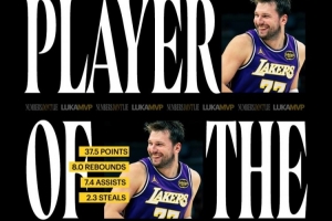 湖人官方發(fā)布東契奇月最佳海報:在另一個級別,西部月最佳球員——盧卡·東契奇??。