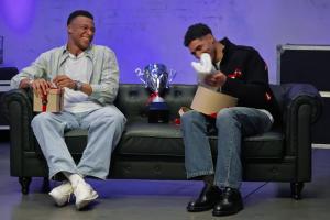 體育資訊04月03日訊 姆巴佩、瓊阿梅尼和阿什拉夫近期參與了訪談節(jié)目《橋》,節(jié)目開場階段,在嘉賓獲贈(zèng)禮物環(huán)節(jié),阿什拉夫收到了一座獎(jiǎng)杯和一條毛巾,而這自然是指此前非洲杯決賽中摩洛哥與塞內(nèi)加爾之間的“毛巾大戰(zhàn)”,以及非洲杯冠軍改判事件。