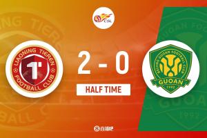 第45分鐘,姆本扎傳中,熱菲尼奧包抄推射破門,遼寧鐵人2-0北京國安?!?/strong>