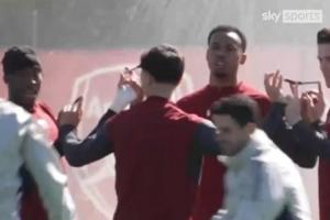 抽象程度堪比AI??阿森納訓(xùn)練4人一組,兩兩手抵鋼筆帶球踢進(jìn)桶