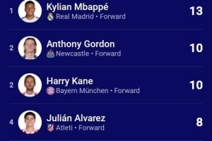 值得注意的是,數據統計顯示,本賽季歐冠到目前為止,射手榜和助攻榜前兩名都是這兩隊的球員(紐卡的安東尼·戈登與凱恩并列射手榜第二)