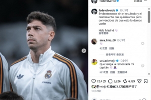 本場比賽巴爾韋德首發出戰,賽后他也在個人社媒發文鼓勵球隊寫道:“顯然未能取得我們所期望的成績與表現,但我們堅信定能扭轉局面。Hala Madrid ??”