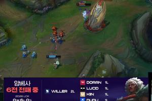 導播給出的消息,LCK本賽段6選狼母,目前勝率還是0%。
