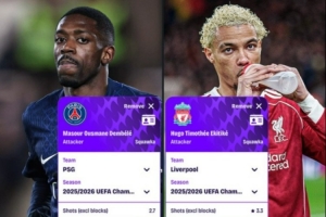 體育資訊4月8日訊 歐冠淘汰賽巴黎對陣?yán)锲值谋荣悓⒃诒本r間明天凌晨打響,數(shù)據(jù)網(wǎng)站Squawka也盤點了兩隊前鋒登貝萊與埃基蒂克在本賽季歐冠每90分鐘數(shù)據(jù),具體如下: