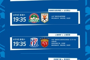 4月11日19:35,河南俱樂(lè)部彩陶坊vs山東泰山