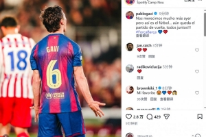 加維社媒曬出比賽照片,并寫道:“昨天我們本應(yīng)得到更好的結(jié)果,但這就是足球。還有次回合比賽,讓我們團結(jié)一心!”